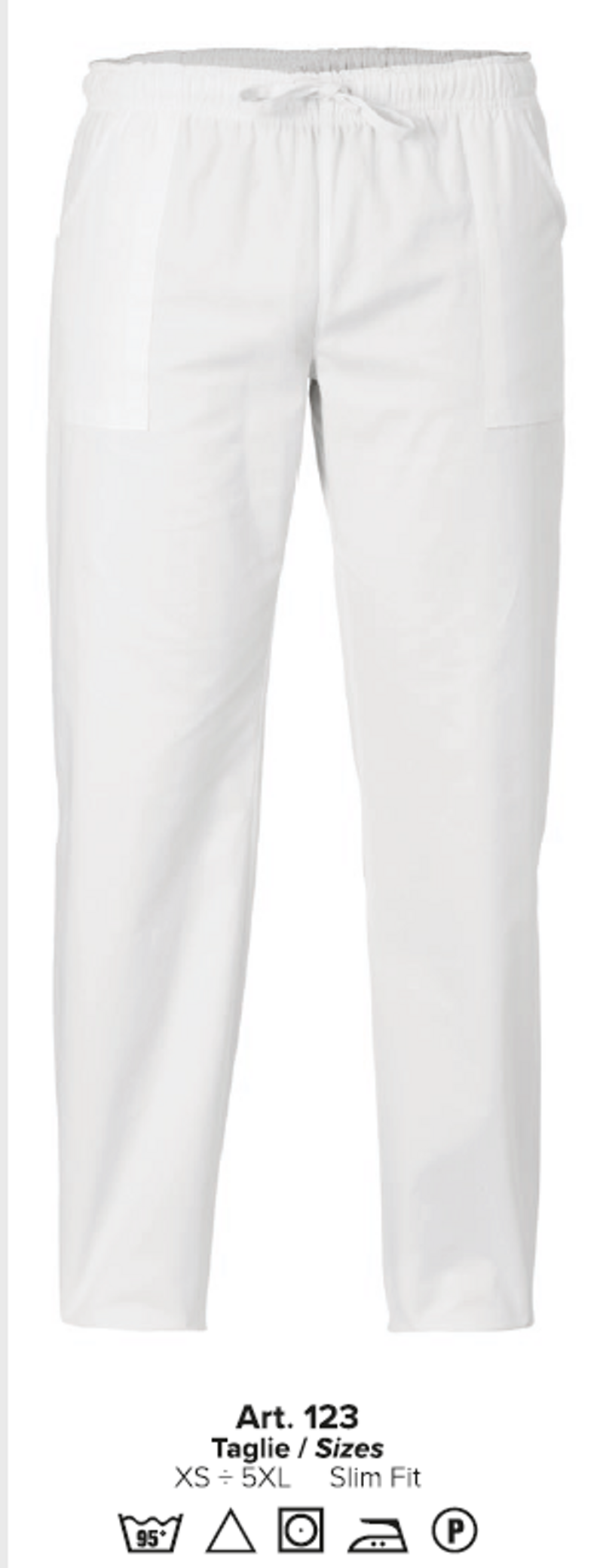 ALAN Pantalone Unisex col. Bianco - Tre tasche a toppa, elastico, laccio - Slim Fit - 100% Cotone lavabile 95°